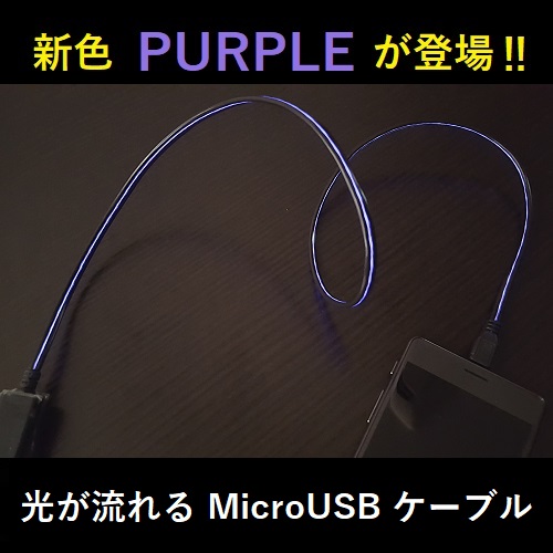 - 【J0061】 光りが流れる Micro USB ケーブル ブラック×パープル