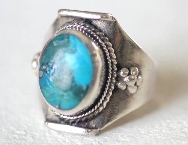 - シルバー925製 ターコイズカラー楕円デザイン付き エスニックリング