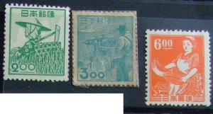 - 昔懐かしい切手 産業図案切手・農婦2円 捕鯨3円 印刷女工6円 3枚組 1948-9