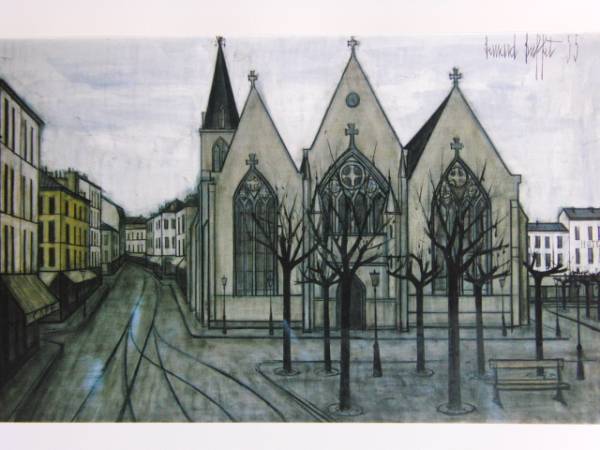 - ベルナール・ビュッフェ、教会広場、超希少画集画、新品額装付、iata