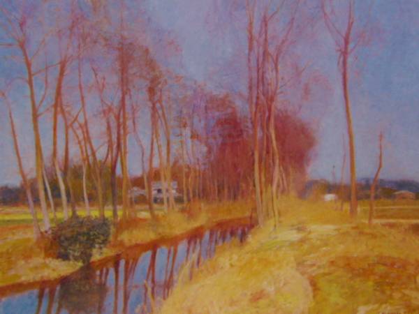 - 渡辺武夫、『堀割のある風景』、希少画集画、高級新品額・額装付、状態良好、送料無料