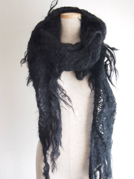 > 663新品15,750円 guorun&guorun かぎ編み フリンジ ロング マフラー ストール ブラック 黒 ショール ストール