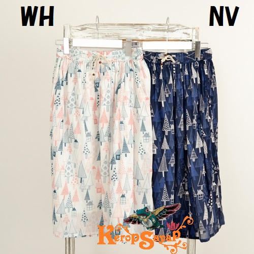 - ゆるふわ♪インド綿 膝丈ミモレ丈スカート 北欧風森のおうち柄 ナチュラルエスニック