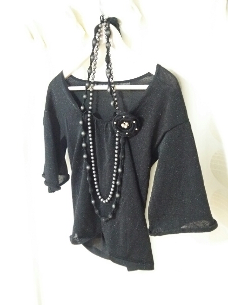 - STRAWBERRY-FIELDS カットソー 黒 ラメ パール ネックレス付 フォーマル ブラック レディース トップス 入学式 卒業式 セレモニー 保護者会
