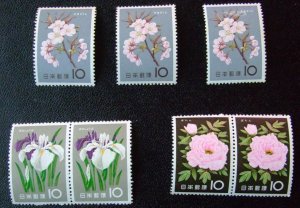 - 未使用 昔の切手 花シリーズ 1961年発行 単片3種 7枚