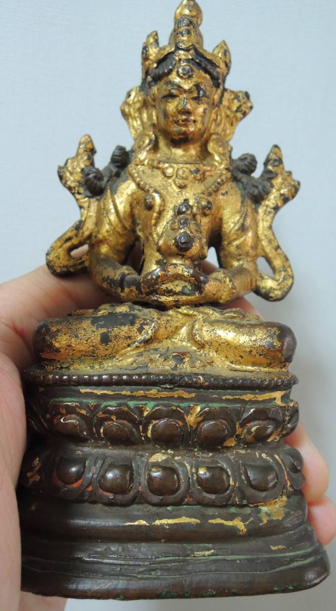 明代 銅漆金 無量寿佛 佛像 仏像 仏教美術 時代保証 本物保証 482g