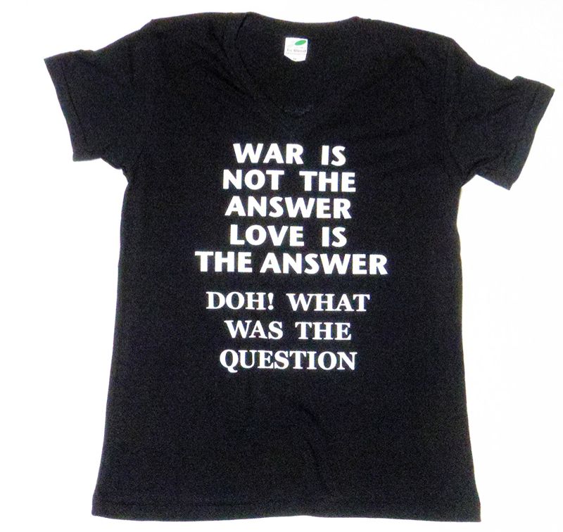 - War Is Not The AnswerVネックメッセージTシャツ黒ブラックL