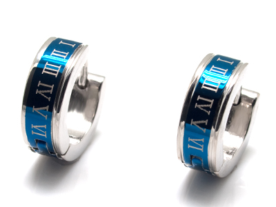 > ★お勧め★変色無し★手入れ不要★肌に優しい★金属アレルギー&温泉&海水浴ご使用OK★ステンピアス★ブルーライン&アトラスローマ数字★
