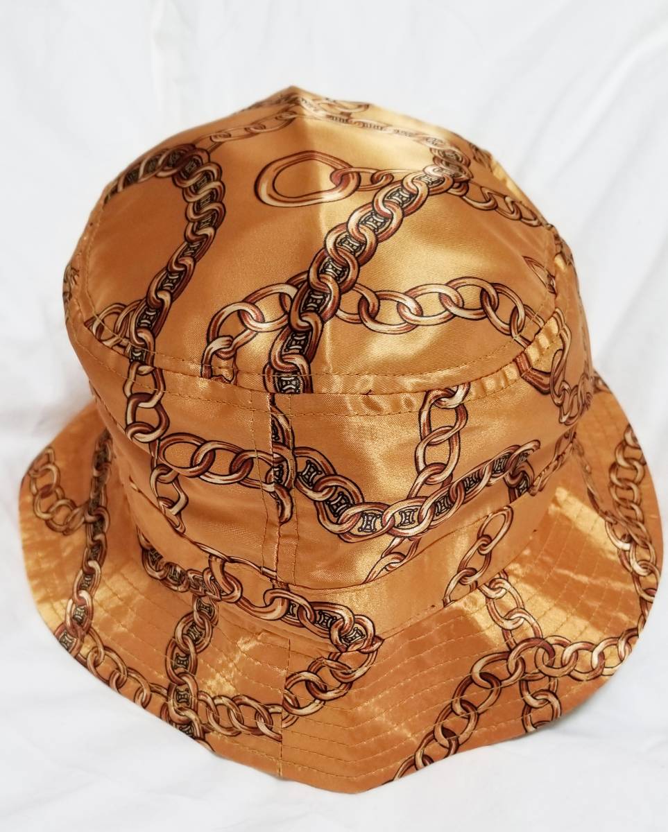 - USAニューヨークKB ETHOSスカーフ柄サテン素材のバケットハットチェーン柄