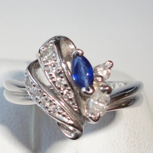 - 送料無料 pt900サファイア0.20極小ダイヤ取り巻きリングused 質屋出品