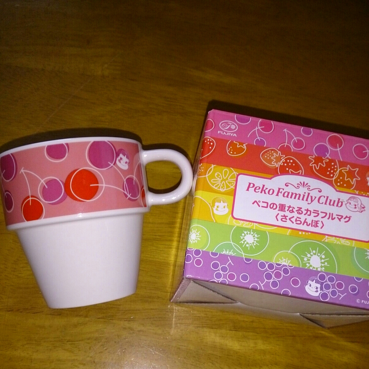- ペコちゃんの重なるカラフルマグカップ☆さくらんぼ☆不二家非売品レア☆未使用品コップ箱入りオリジナル