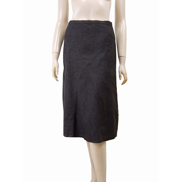 > 新品同様★tb*ティービー*マツオ*濃グレー系*上質ヘリンボーン*美パネル*上級Aラインロングスカート*38(Mサイズ.9号)