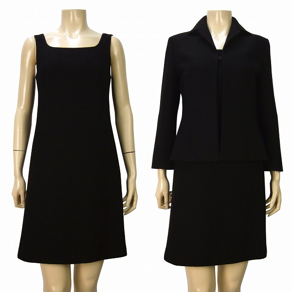 - H 新品同様★ANNE KLEIN アンクライン★黒*綺麗な織柄*ブラックフォーマル*上品ワンピーススーツ*9号(M*38相当)