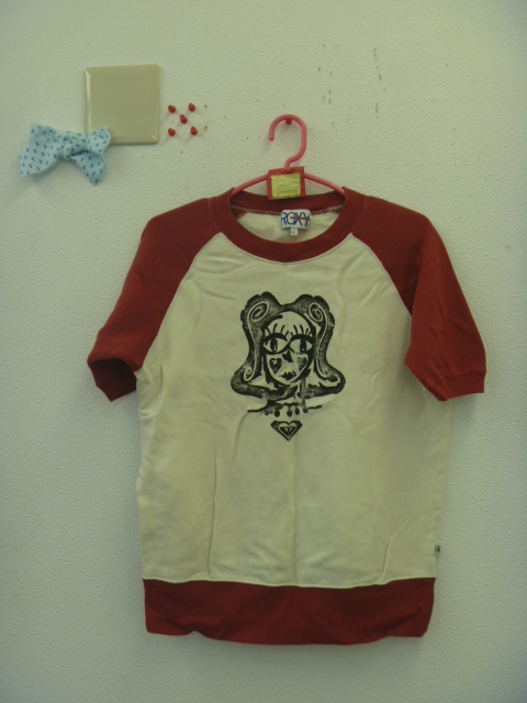 - ●レディース〔ROXY〕白×赤 ラグラン・半袖トレーナー(裏起毛)☆Lサイズ