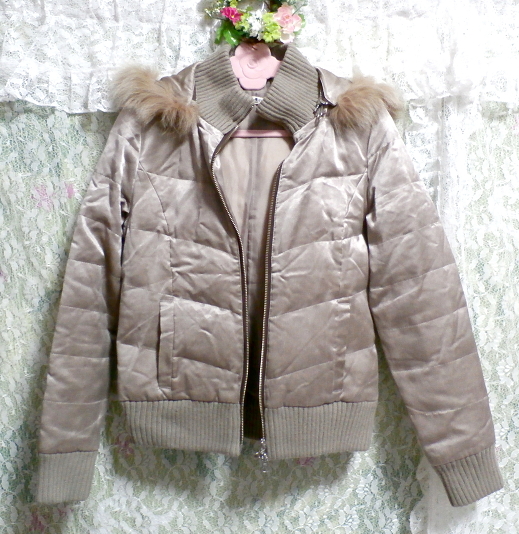 - 光沢ベージュ亜麻色ブルーフォックスファー毛皮フードダウンコート/アウター Shiny beige flax color blue fox fur hooded down coat/outer