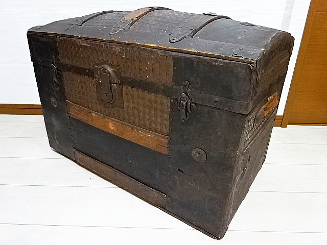 - 1800年~1900年代 USA アメリカ アンティーク トランク ビンテージ ディスプレイ 宝箱 船舶 シャビー 台 インダストリアル 収納 テーブル
