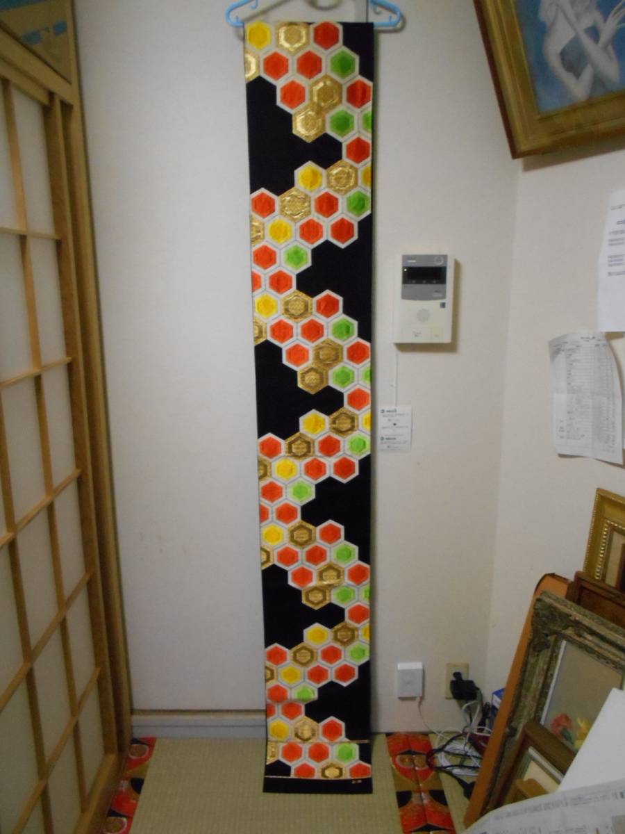 ★和装★帯★〇〇帯★正絹★幅・約30cm★黒地に六角形(金・オレンジ・黄色・黄緑)着物★和服★