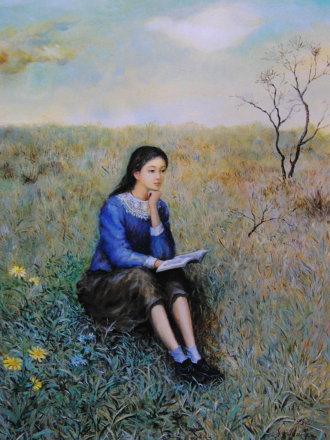 - 設和幹、春の野、希少な額装用画集より、新品高級額装付、状態良好、送料無料