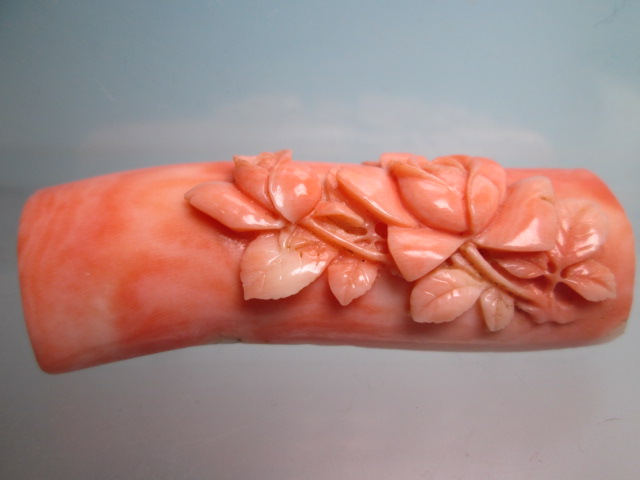 - ☆アンティーク・本珊瑚 薔薇の花彫刻の帯留め 24,31g