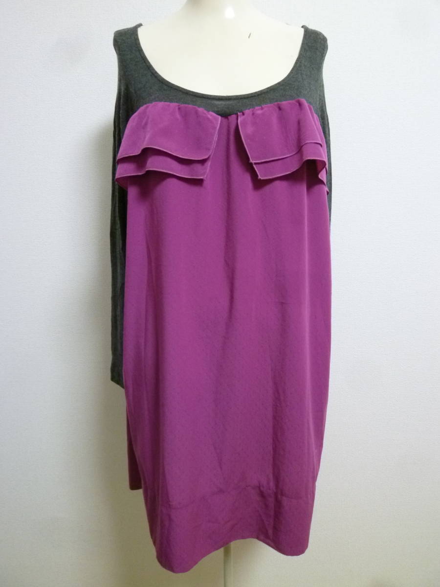 > Banner Barrett/バナーバレット♪グレー×パープル系フェイクツイン風切り替え胸元フリルドッキングワンピース38/紫♪323