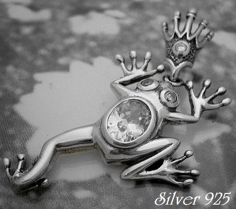 - シルバー925銀のジルコニア付き王冠フロッグ カエル ペンダント/Bu-boon silver