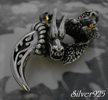 - シルバー925銀の天然石オーロラ水晶キャッチ龍ドラゴン ペンダント/Bu-boon silver
