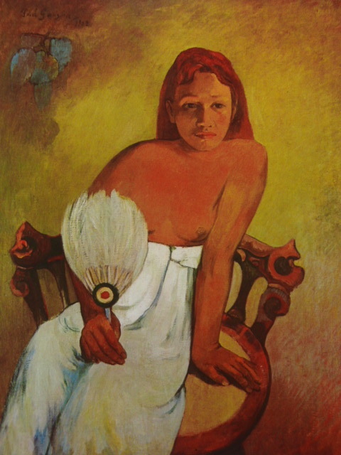 - ゴーギャン、【扇子を持った娘】、希少な画集画、新品高級額 額装付、状態良好、送料無料、絵画 人物画