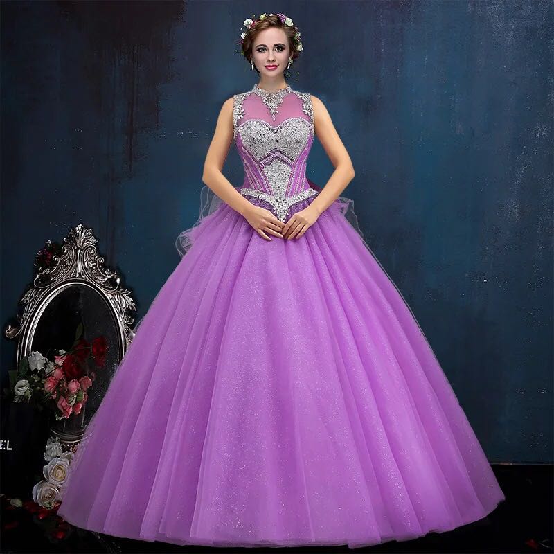 - 可愛パープル#ビッグリボン#ノースリーブ#パーティードレス#アクセサリー&大パニエセット#サイズオーダー無料#二次会#大会#前撮り#演出衣裳