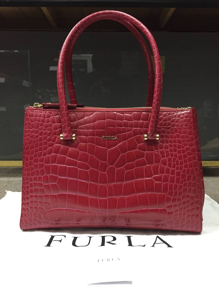 - 美品!格安!FURLA フルラ LOTUS ロータス クロコ型押し トートバッグ ハンドバッグ