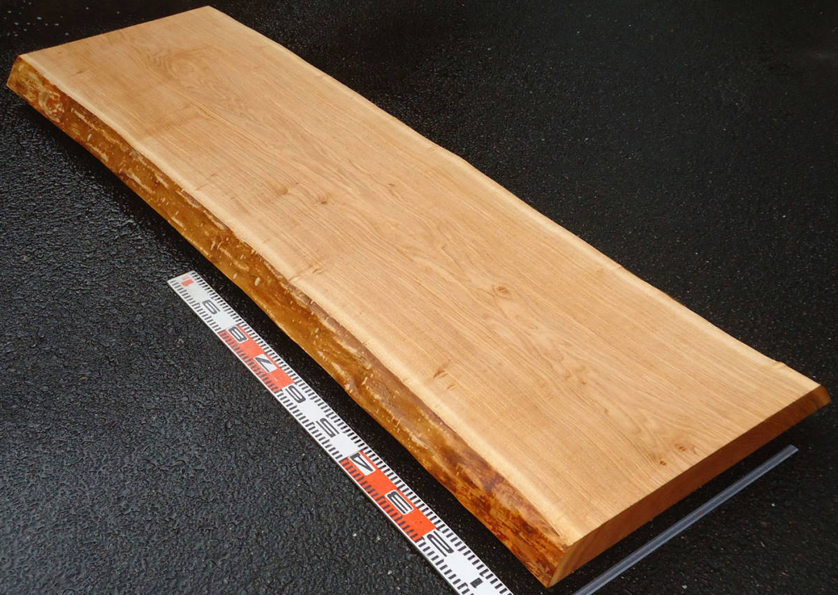 ほぼ無節、白肌色の細かい杢目が非常に綺麗です。裏面に節1つありますが厚みも6cm以上あり、重厚感があります。
