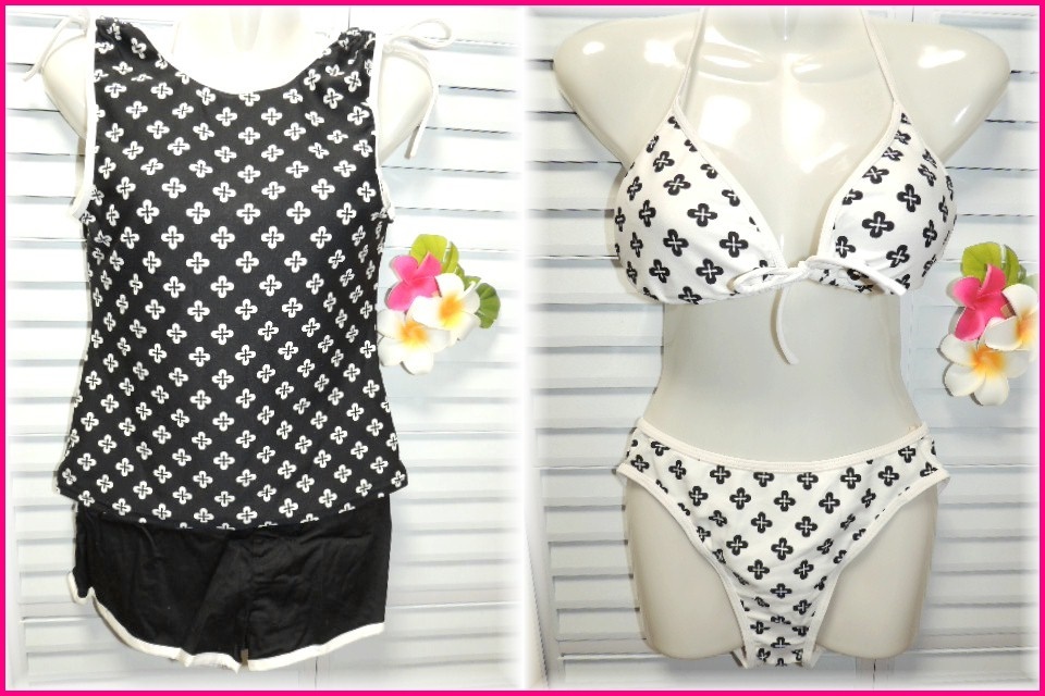 - Nikki 日本製 セパレート水着 タンキニ・ショートパンツ4点セット 4way 11号/L ホワイト×ブラック
