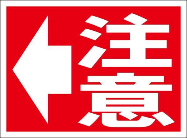 - シンプル看板「注意(矢印左)」屋外可