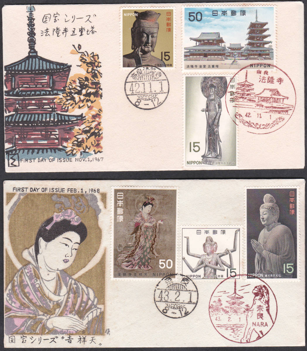 - FDC 1967-69年 国宝シリーズ 第1次 全7集 完 3貼 松屋
