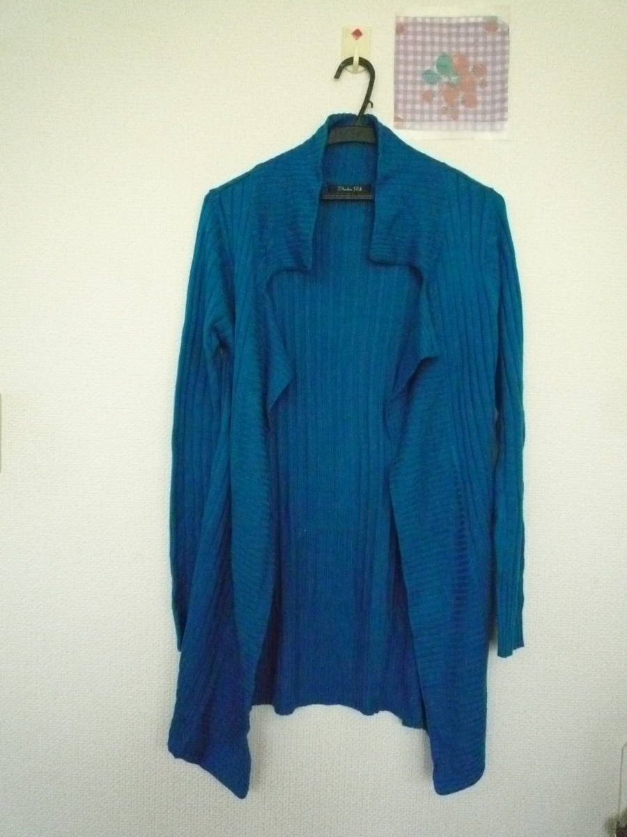 - ★ Shadow Roll カーディガン 着流し ロング丈 カーデ 衿付 長袖 毛糸アクリル ブルー系 ( M )