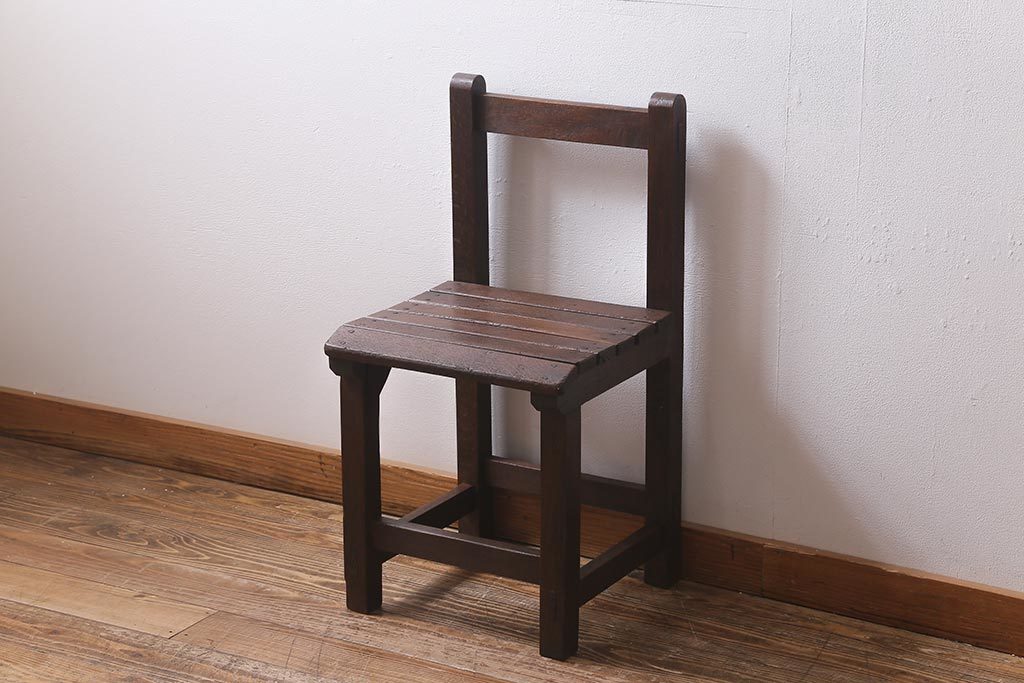 - R-039872 アンティーク家具 和製アンティーク 樫材 素朴な風合いがレトロな木製チェア(椅子、板座チェア)(R-039872)