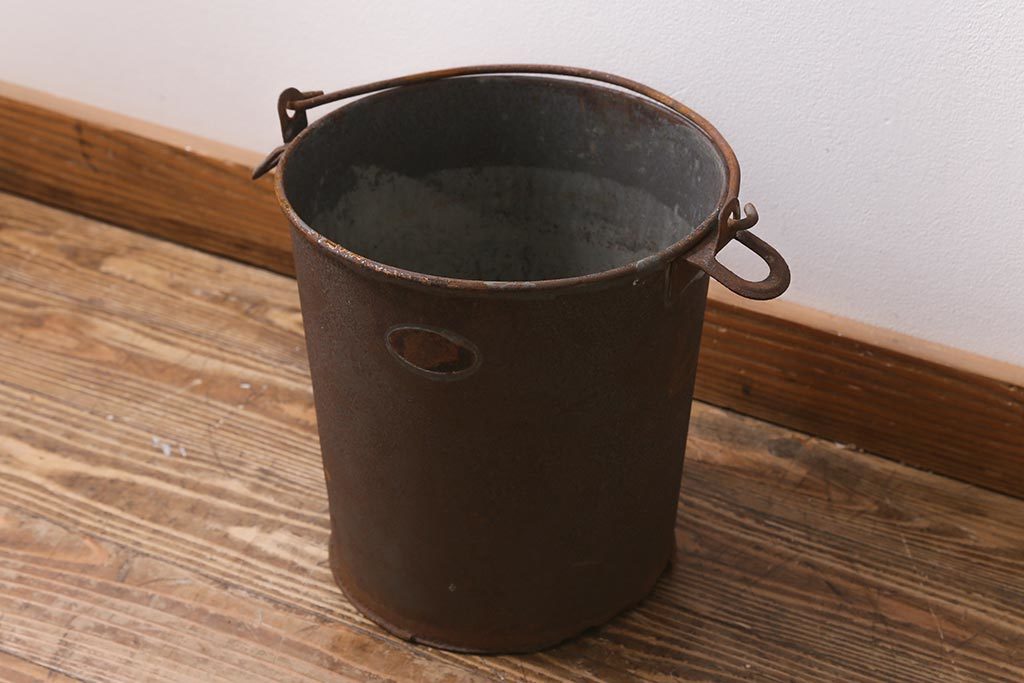 - R-040192 レトロ雑貨 ブリキ 錆びた風合いが味わいのある古いバケツ(R-040192)