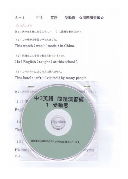 - プロが教える 英語 中学 3年 DVD 1 受動態 応用編 問題集 中3 中学3年 中学校 復習 自宅学習 問題 教材 まとめ プリント 販売多数