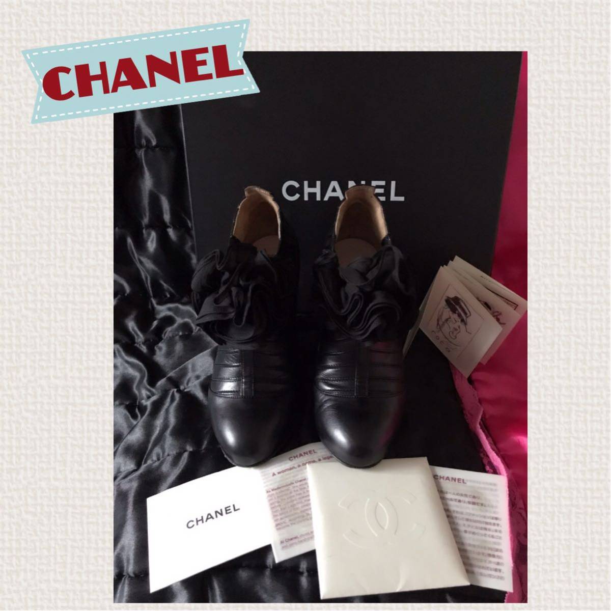 > used!美品☆ CHANEL シャネル ☆本革リアルレザー ブーティー フラワーコサージュ パンプス
