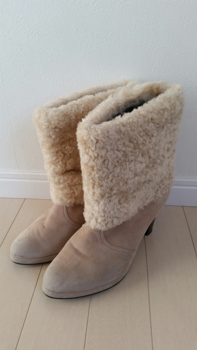 > DANIEL HECHTER ダニエルヒッチャー スエード ボア ショートブーツ サイズ36 23cm23.5cm ヒール7cm ベージュ