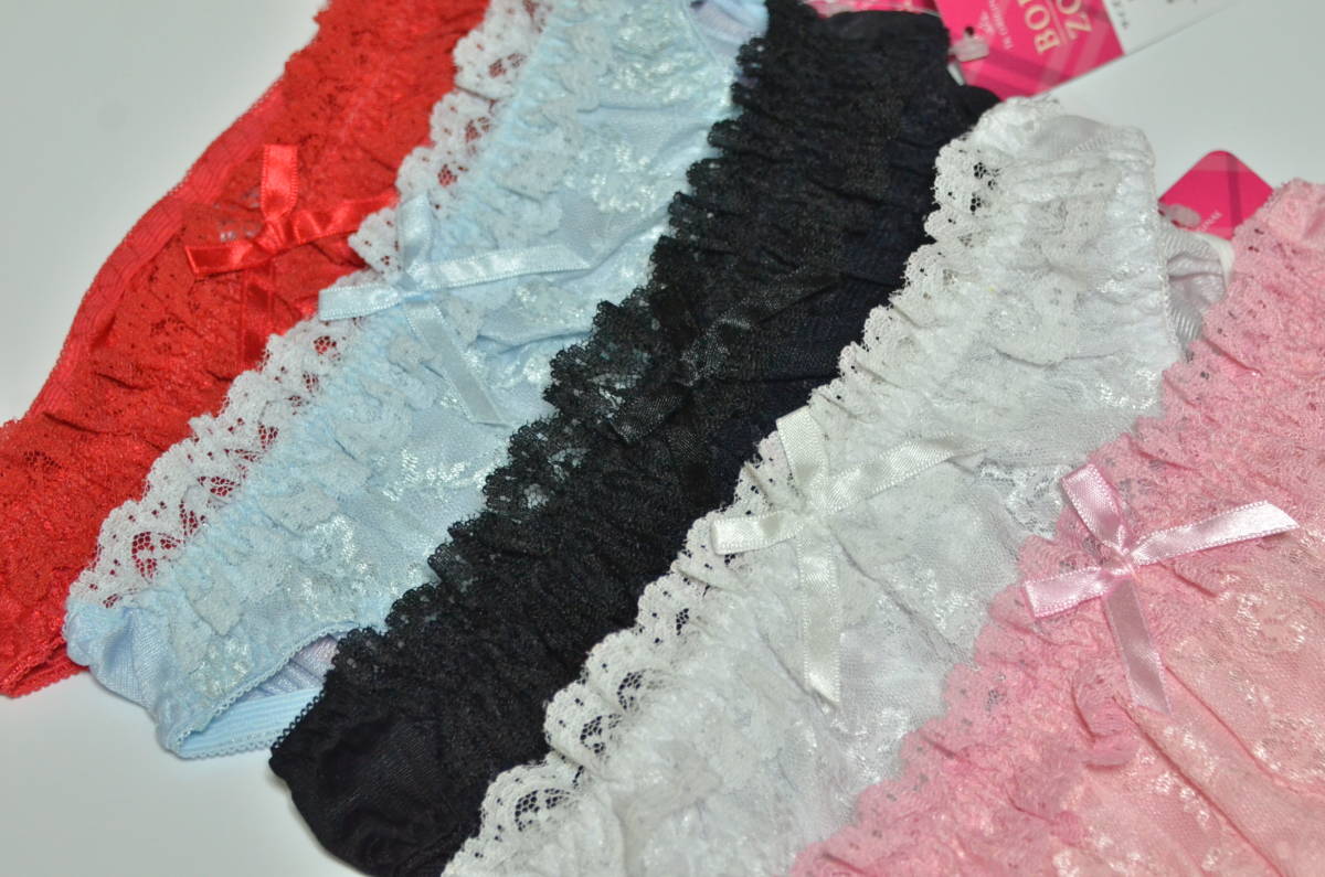 - B 『送料無料』★ツルツル光沢サテン地ショーツ★ふりふり レース★ちびぱん★5枚組★ Mサイズ ★