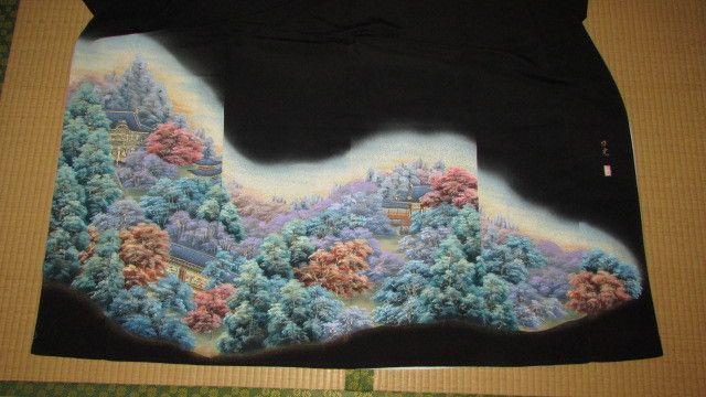 - 2000円値引き(旧家・蔵出し)(古布・作家物・手描き日光東照宮模様留袖・比翼付き)貴重珍品