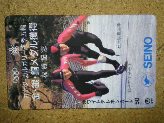 - spor・スケート スピードスケート 獅子井英子 石原辰義 カナダ・カルガリー冬季五輪 SEINO テレカ