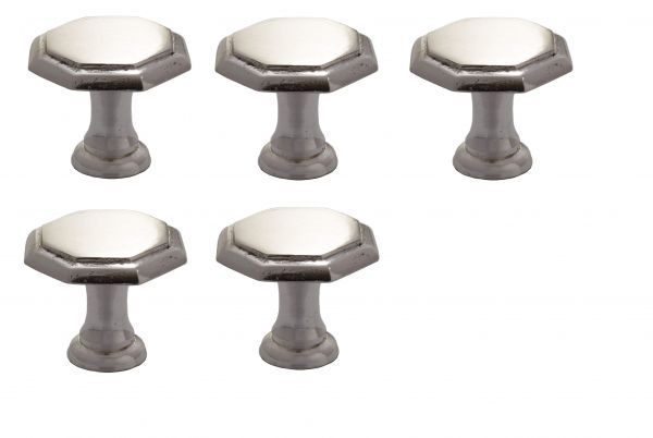- 送料無料 訳アリ真鍮製つまみ 直径約30mm 5個セット 銀メッキ ヴィクトリアンCBノブ フラットオクタゴナル 1-1/4”x5