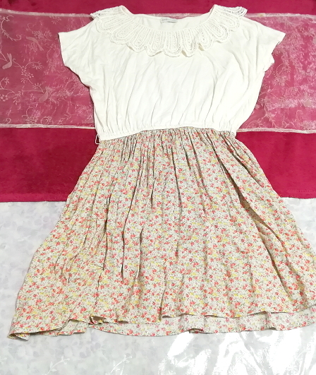 > 白ホワイトピンク花柄ネグリジェチュニックワンピース White tops pink floral pattern negligee skirt short sleeve tunic dress