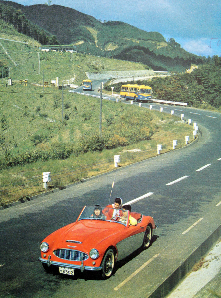 - 旧車 古い ポストカード 4枚set! 比叡山ドライブウェイ 名神高速開通!! ☆ 日野 コンテッサ トヨペット コロナ オープンカー 昭和30年代