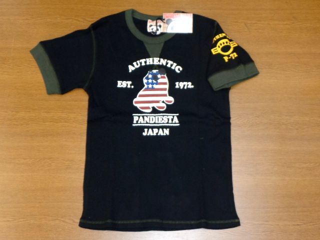 > 錦 PANDIESTA JAPAN ワッフル Tシャツ アメリカン フラッグ パンダ/黒Mサイズ/パンディエスタ ジャパン 588853 熊猫 サーマル 新品