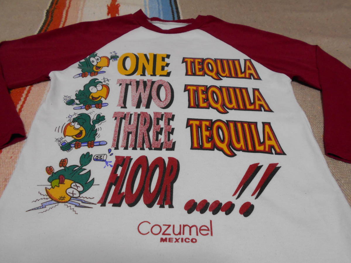 - 1990S COZUMEL MEXICO TEQUILA メキシコ テキーラ ラグランスリーブ ベースボールTシャツ 七分袖 ビンテージ VINTAGE CARTOON