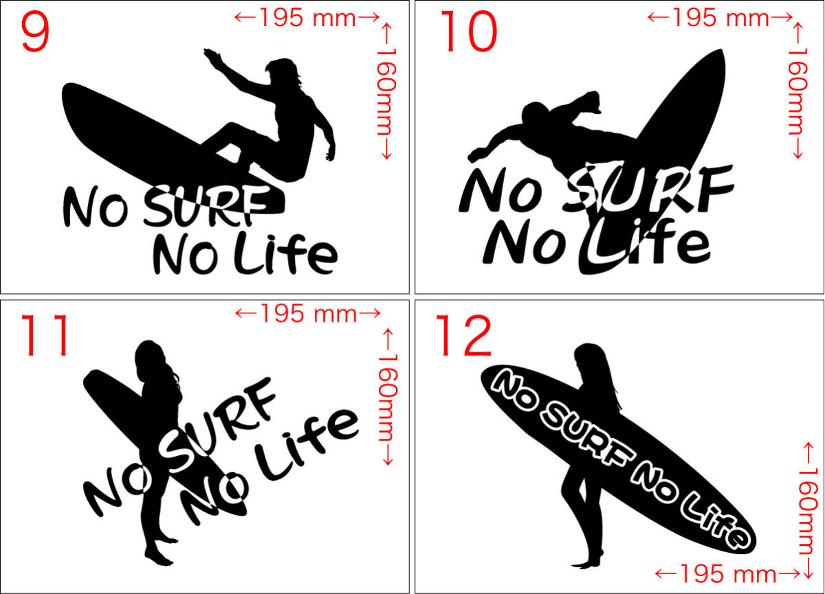 > No Surf No Life (サーフィン)・2 (8種中1点選択) カッティングステッカー 耐水・耐候 車やバイクのワンポイントやキズ隠しに