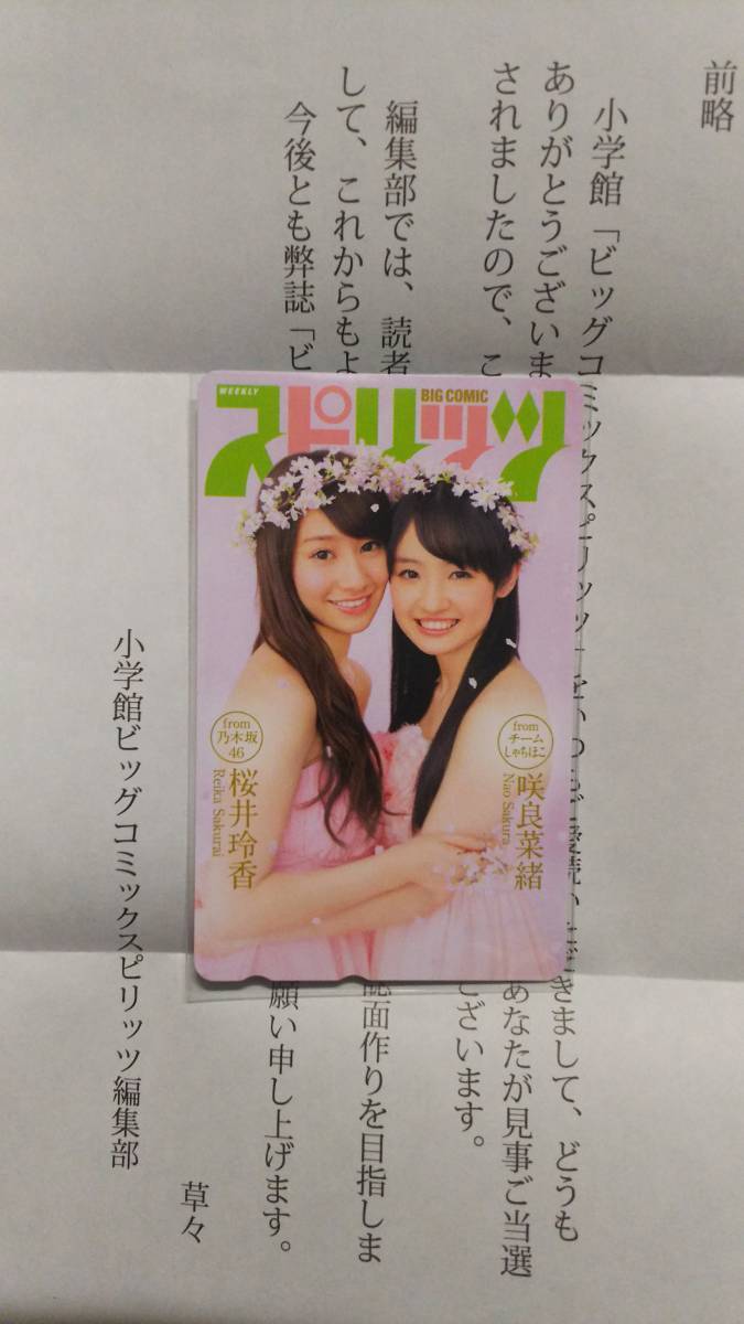 - ビッグコミックスピリッツ 抽プレテレカ 乃木坂46 桜井玲香 チームしゃちほこ 咲良菜緒 通知書付き