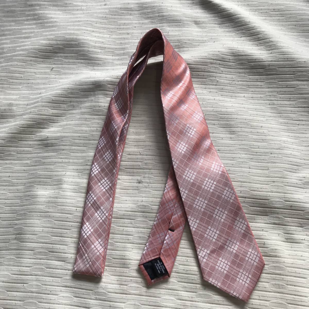 - ネクタイ シルク100% TEMALO サーモンピンク系柄 オールシーズン可能◆◆未使用